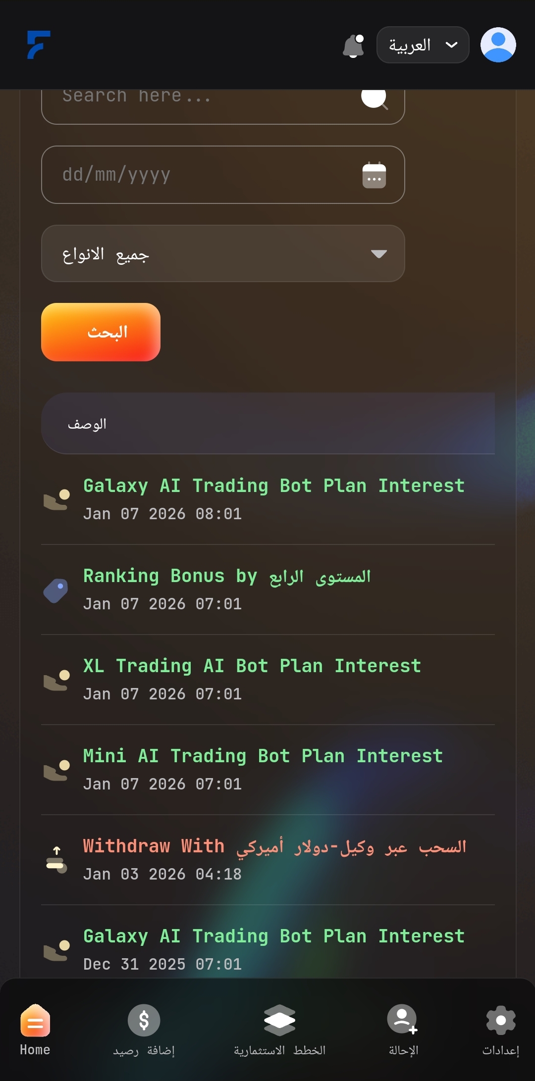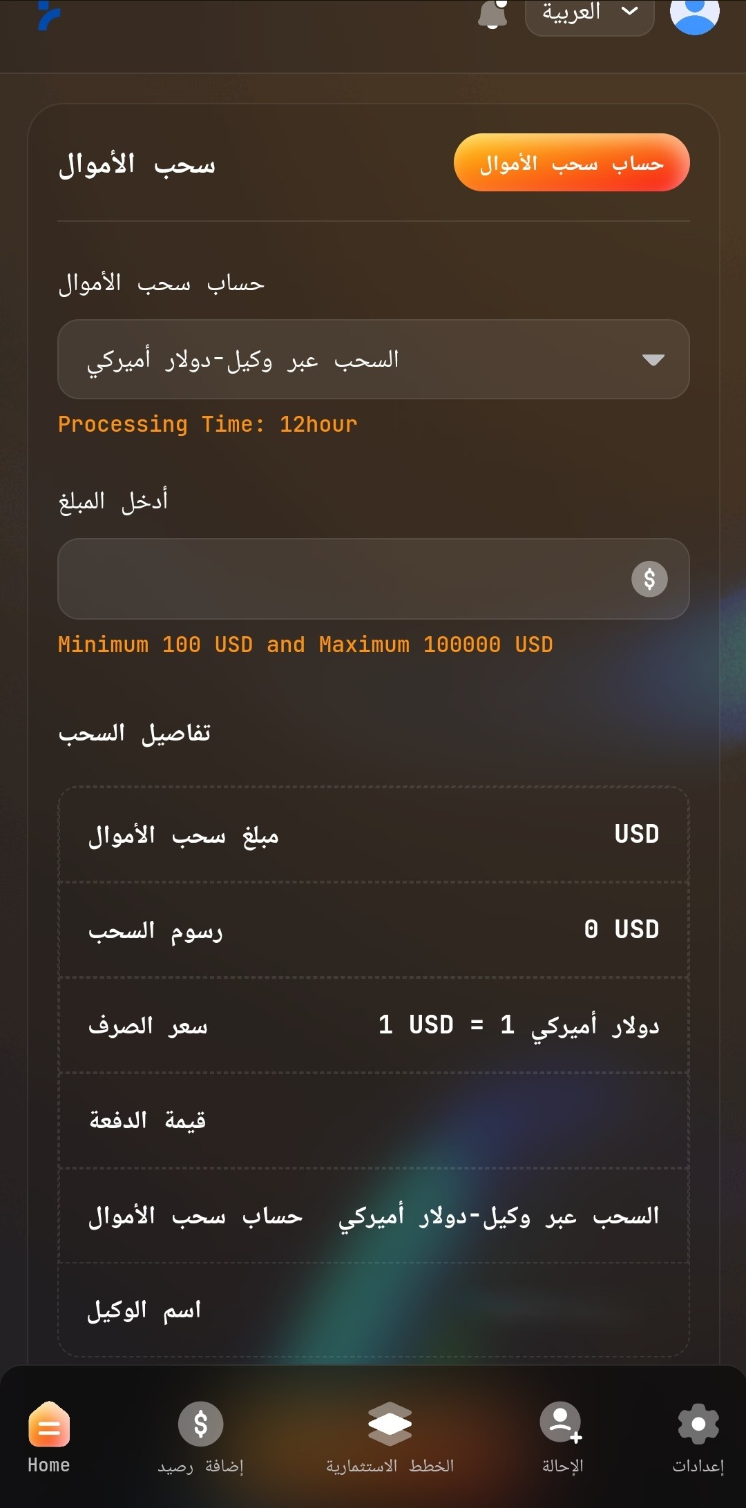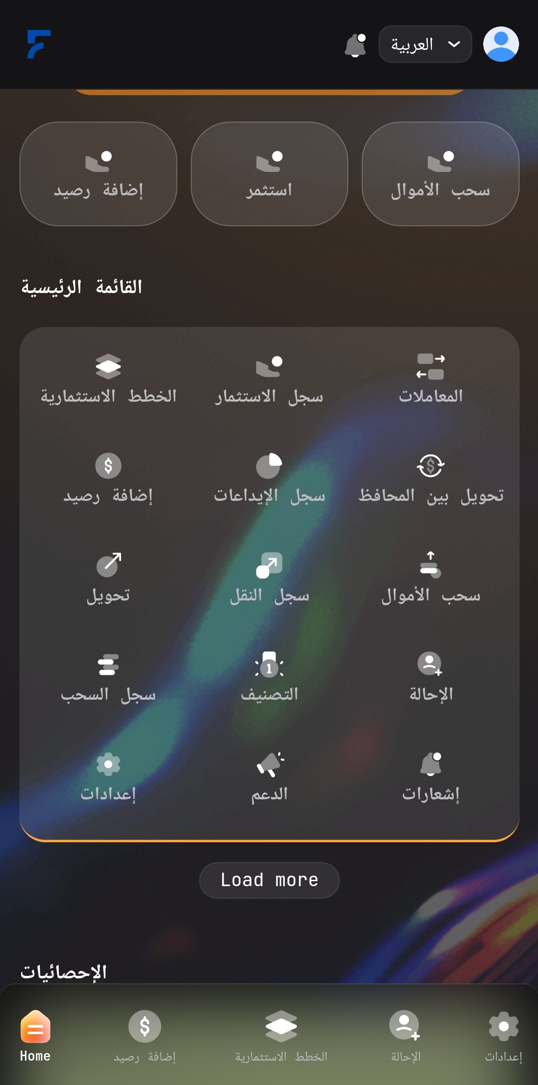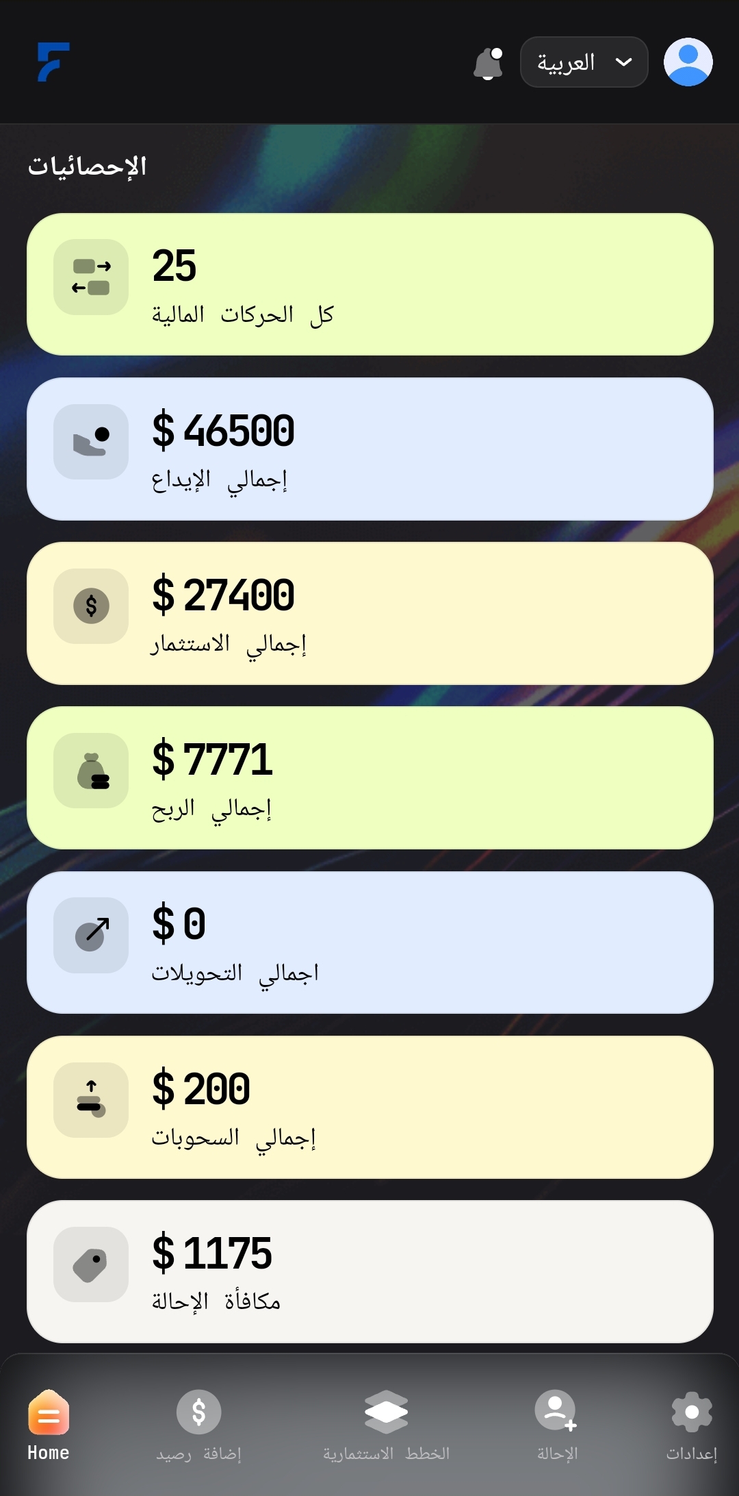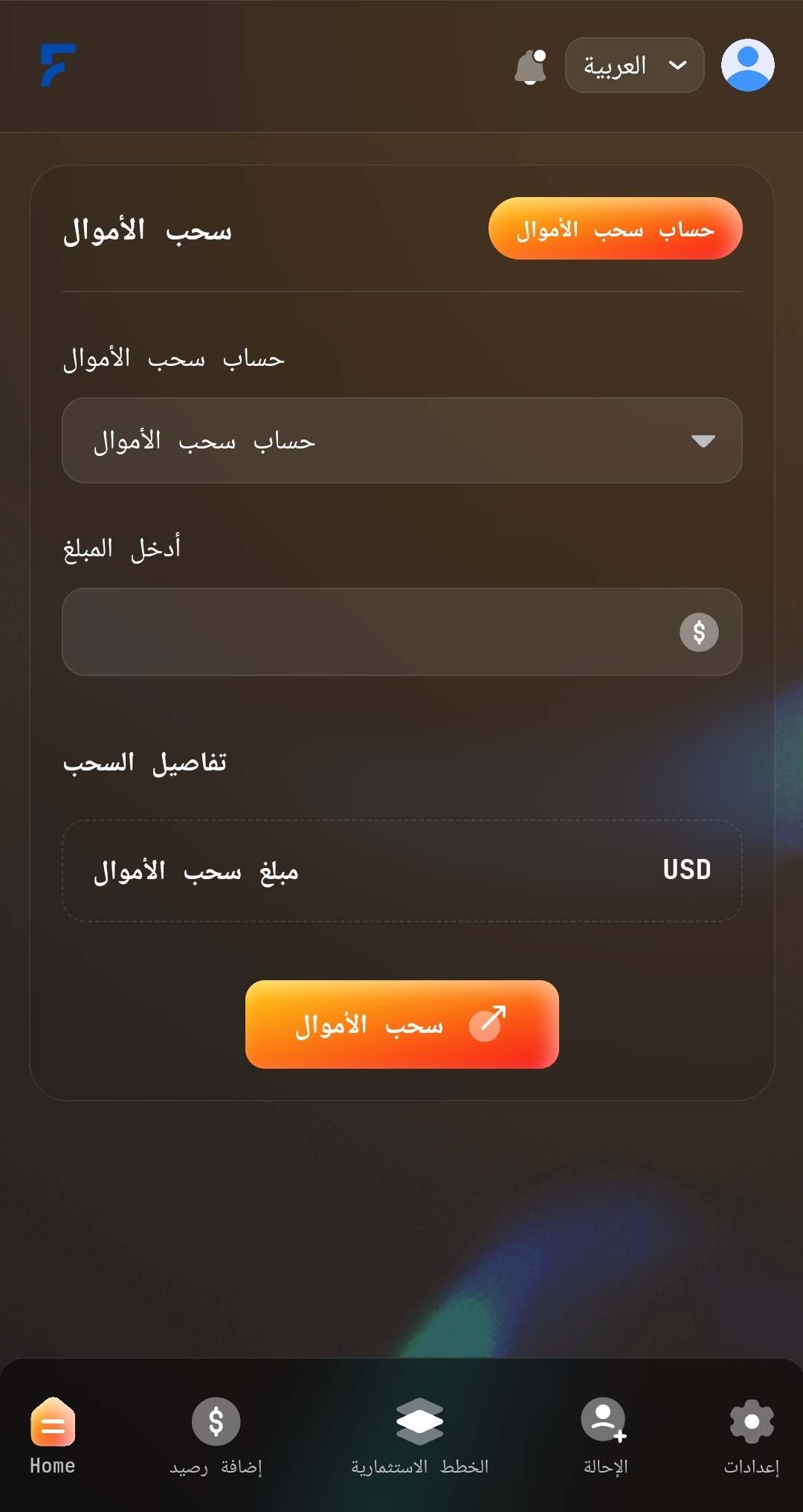 واجهة ذكية مصمّمة لتمنحك تحكّمًا كاملًا باستثماراتك، من متابعة الأرباح وإدارة العمليات، إلى تنفيذ الإيداعات والسحوبات بكل سهولة ووضوح.